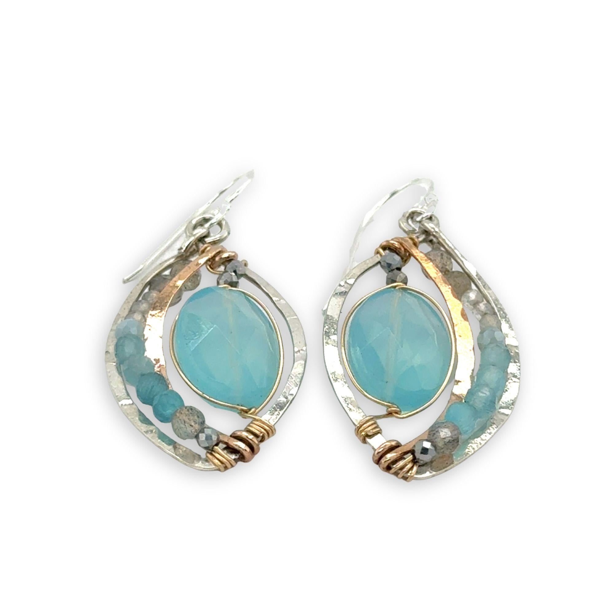 - Labradorite, aquamarine, and pyrite gemstones