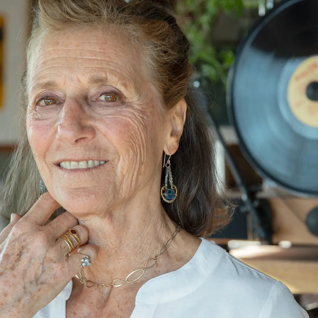 Art by Any Means jewelry is designed by Vanessa Savlen and completely handmade in our seaside studio. Graceful silhouettes of hand-formed hammered metals are set with individually selected gemstones to create light sculptural pieces that are as original as you. Art by Any Means earthy glam jewelry details are artisanal luxury with intention and style. Why wear accessories when you can wear art?