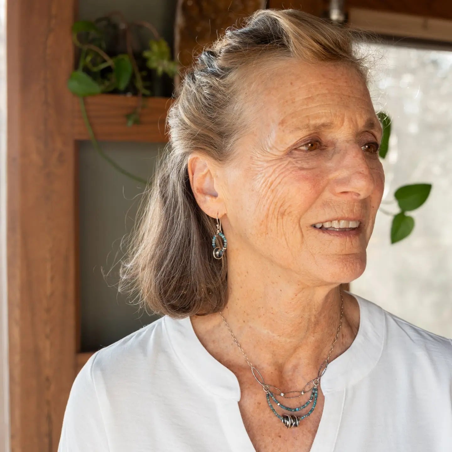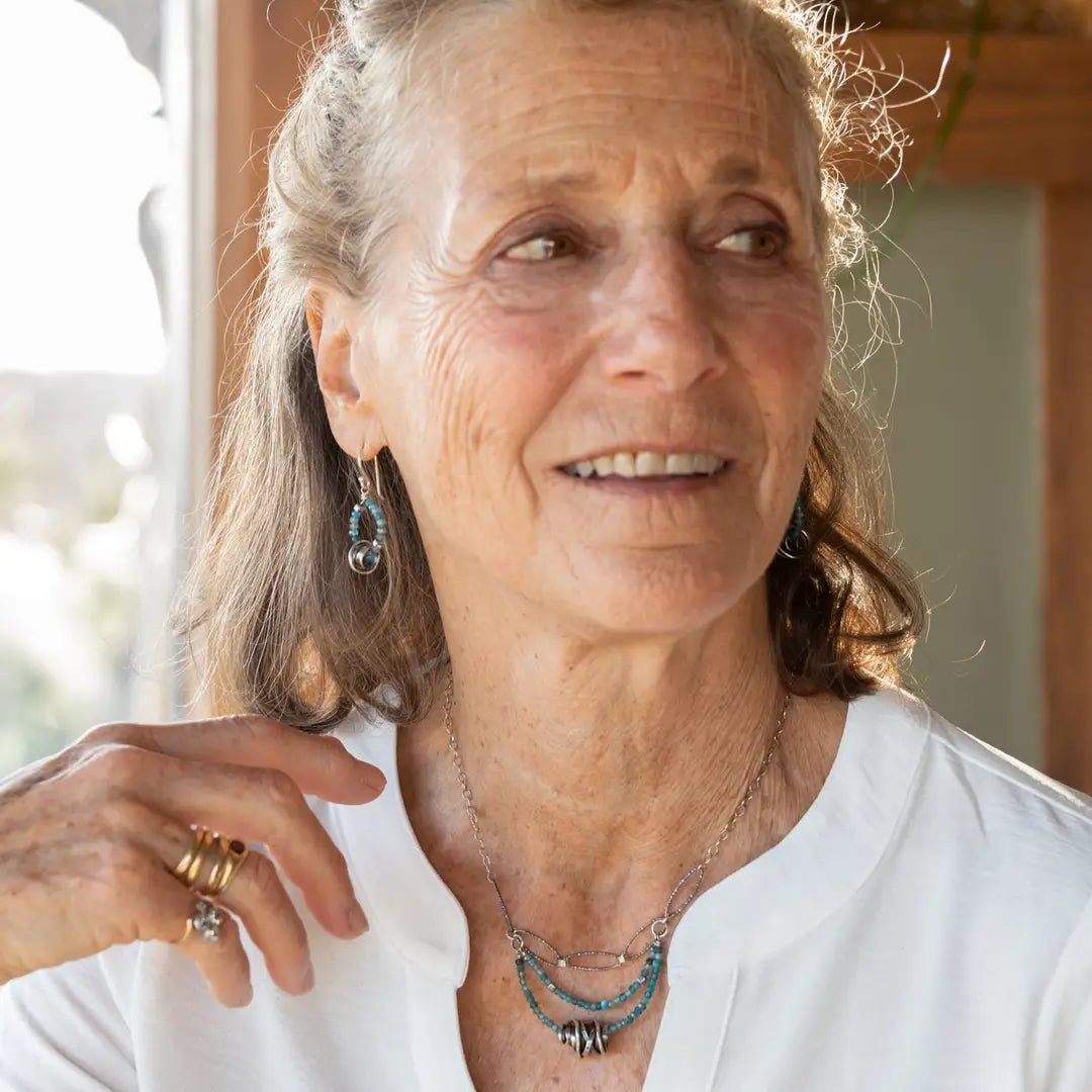 Art by Any Means jewelry is designed by Vanessa Savlen and completely handmade in our seaside studio. Graceful silhouettes of hand-formed hammered metals are set with individually selected gemstones to create light sculptural pieces that are as original as you. Art by Any Means earthy glam jewelry details are artisanal luxury with intention and style. Why wear accessories when you can wear art?