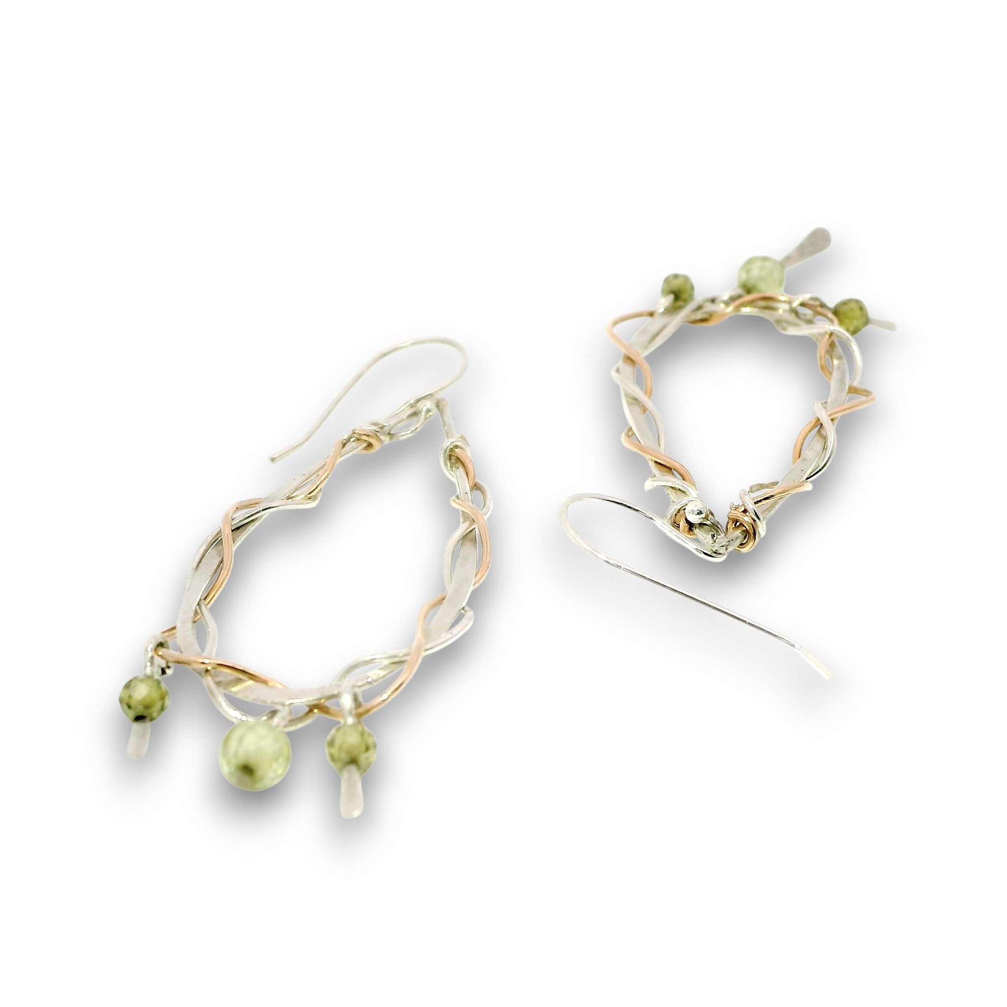 - Handmade hammered sterling silver and bronze braided drops