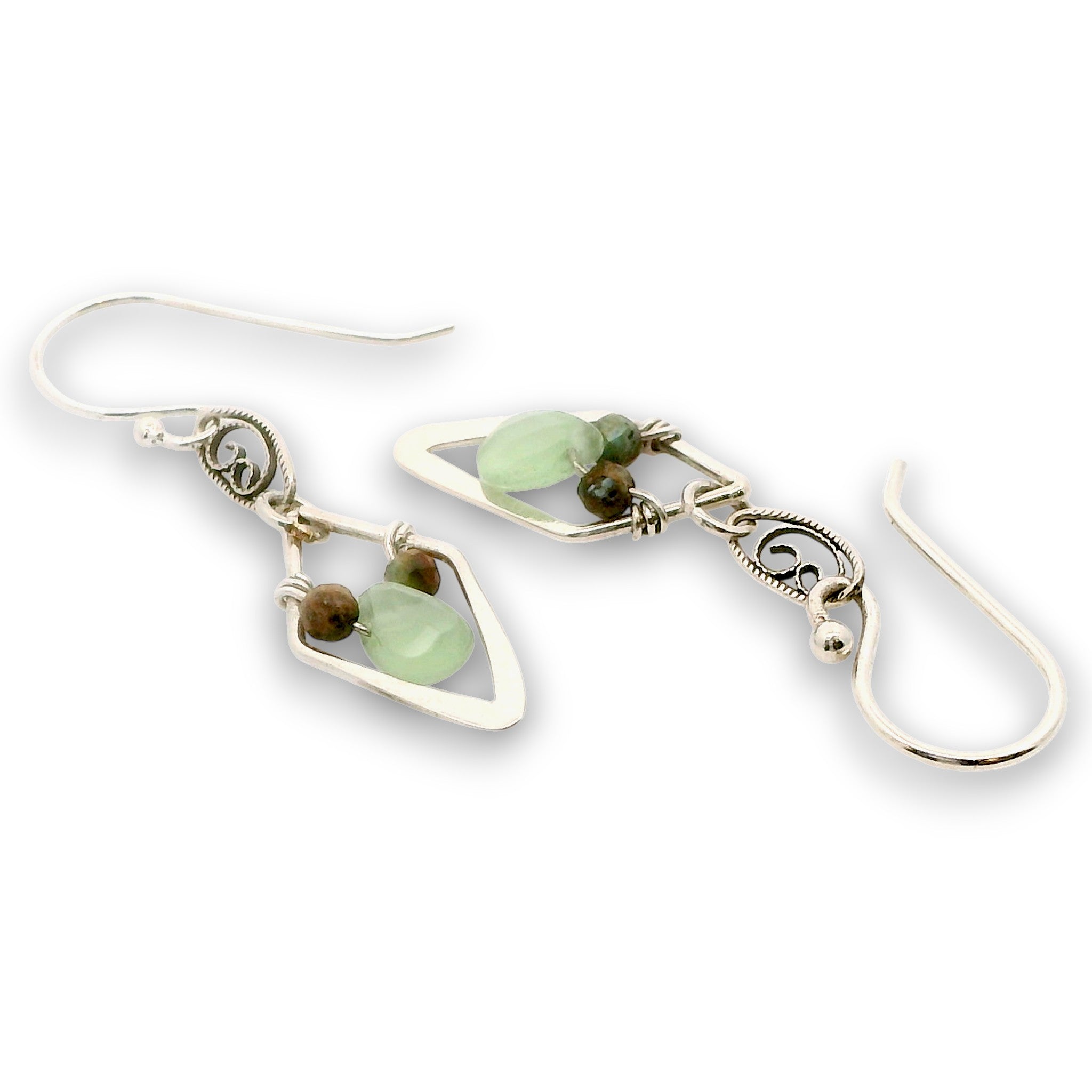 Do not store in direct sunlight. Salt water or chlorine will tarnish the metal. Use brass cleaner or silver polish on the metal. Wash gemstones with water and mild soap. Dry with a soft cloth if jewelry gets wet.