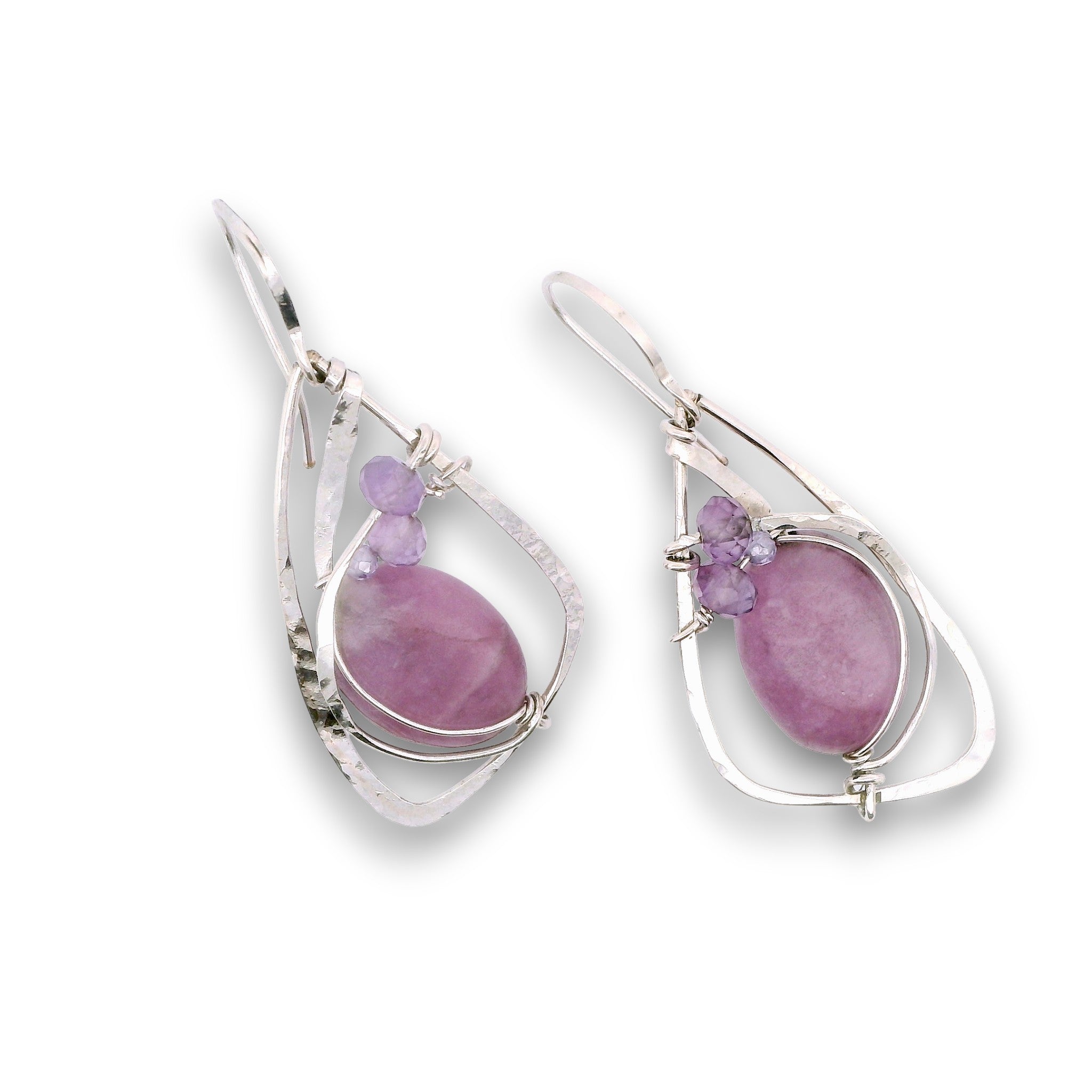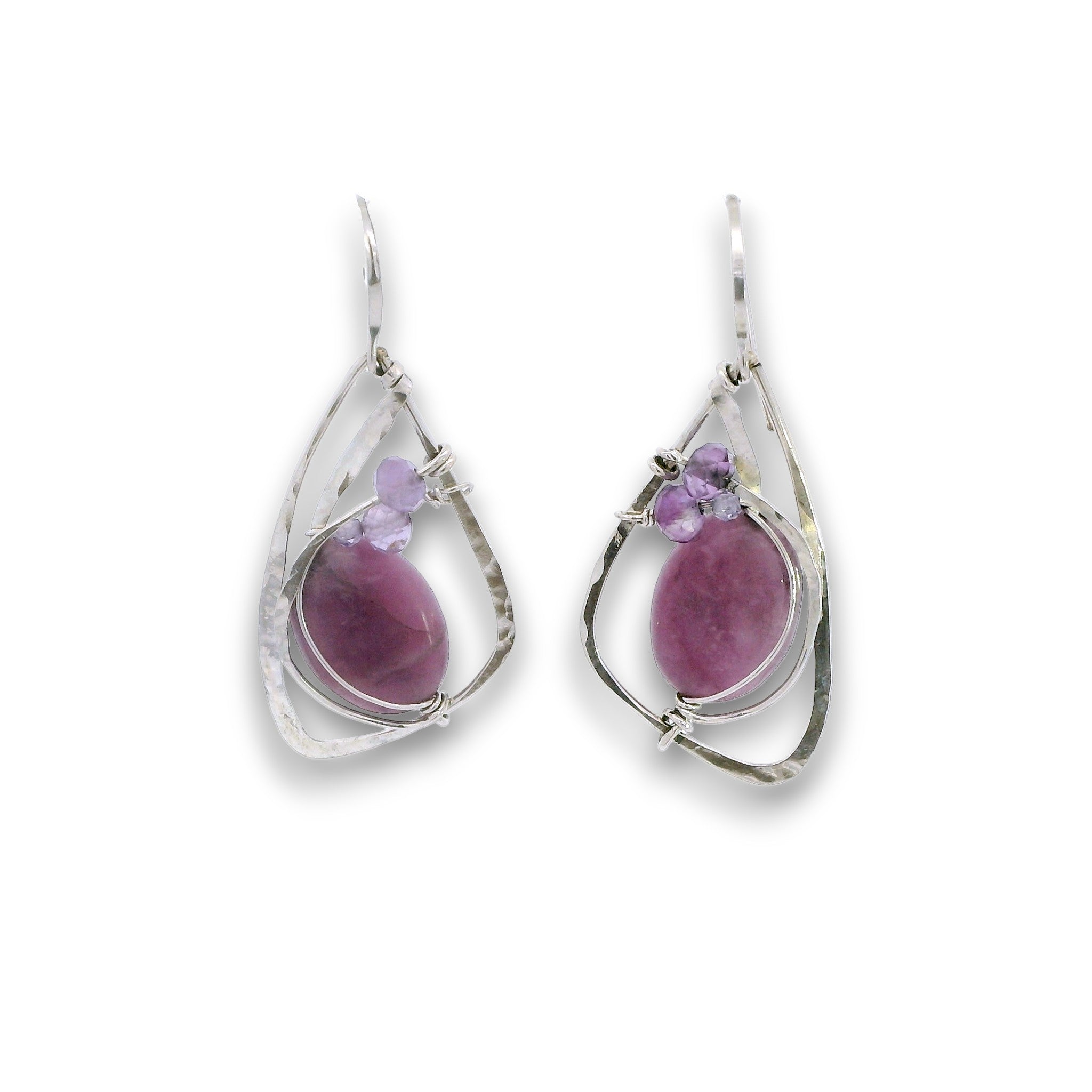 - Sugilite smooth oval, cubic zirconia, and amethyst faceted gemstones