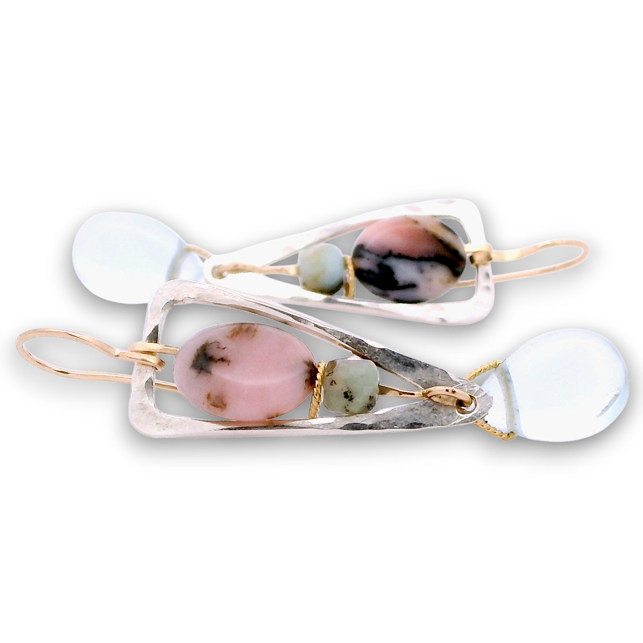 - Pink opal, blue quartz, and chrysoprase cube smooth gemstones