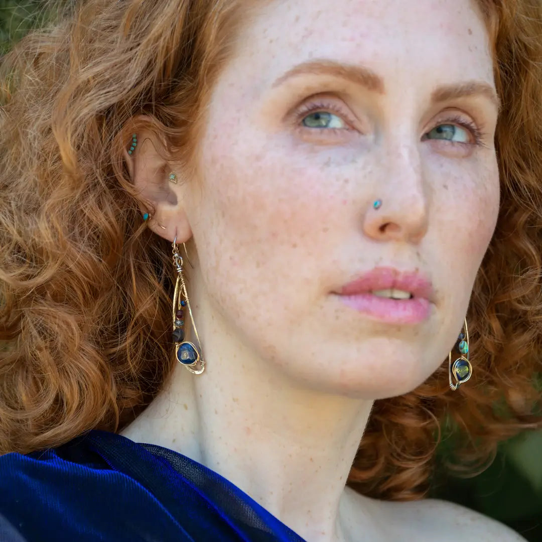 Art by Any Means jewelry is designed by Vanessa Savlen and completely handmade in our seaside studio. Graceful silhouettes of hand-formed hammered metals are set with individually selected gemstones to create light sculptural pieces that are as original as you. Art by Any Means earthy glam jewelry details are artisanal luxury with intention and style. Why wear accessories when you can wear art?