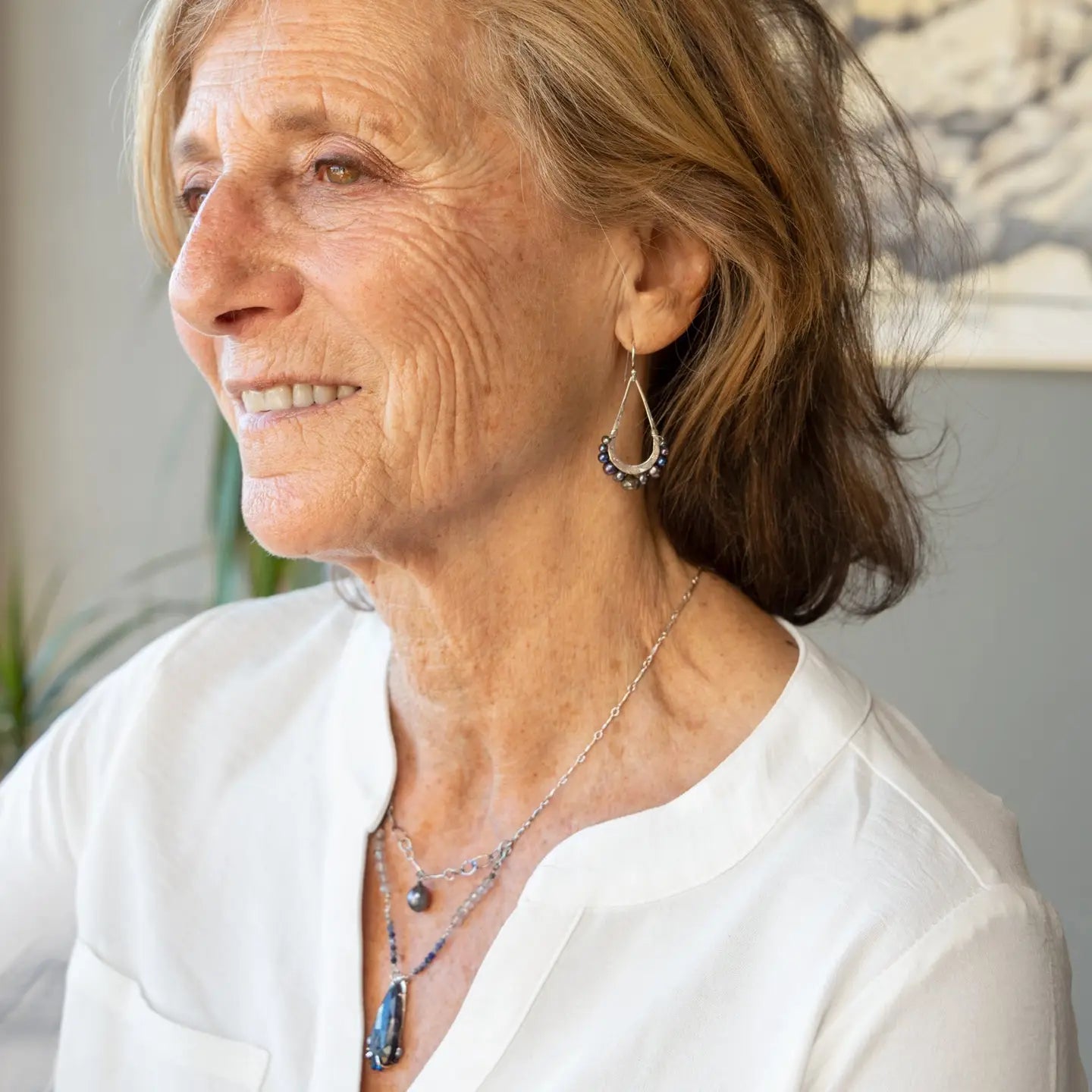 Art by Any Means jewelry is designed by Vanessa Savlen and completely handmade in our seaside studio. Graceful silhouettes of hand-formed hammered metals are set with individually selected gemstones to create light sculptural pieces that are as original as you. Art by Any Means earthy glam jewelry details are artisanal luxury with intention and style. Why wear accessories when you can wear art?