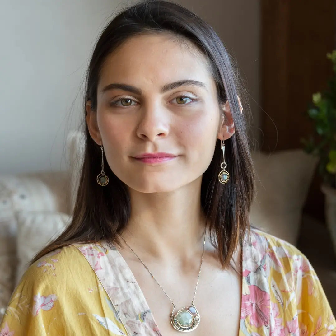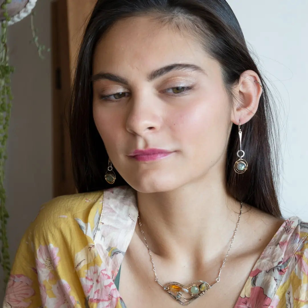 Art by Any Means jewelry is designed by Vanessa Savlen and completely handmade in our seaside studio. Graceful silhouettes of hand-formed hammered metals are set with individually selected gemstones to create light sculptural pieces that are as original as you. Art by Any Means earthy glam jewelry details are artisanal luxury with intention and style. Why wear accessories when you can wear art?