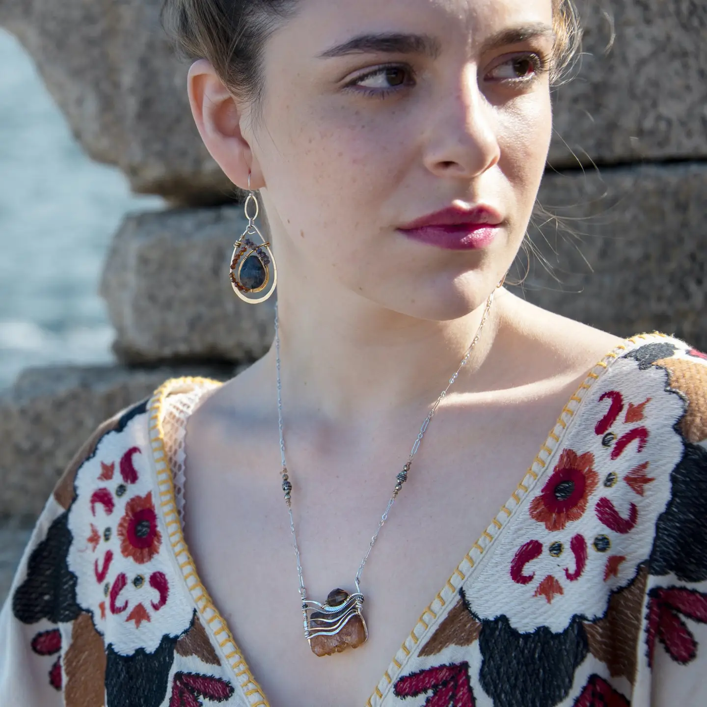 Art by Any Means jewelry is designed by Vanessa Savlen and completely handmade in our seaside studio. Graceful silhouettes of hand-formed hammered metals are set with individually selected gemstones to create light sculptural pieces that are as original as you. Art by Any Means earthy glam jewelry details are artisanal luxury with intention and style. Why wear accessories when you can wear art?