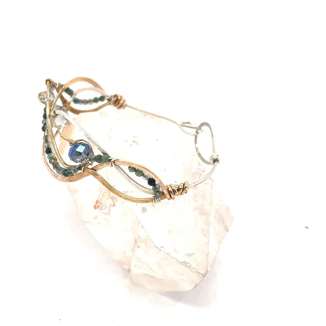- Handmade hammered and stamped sterling silver and bronze cuff