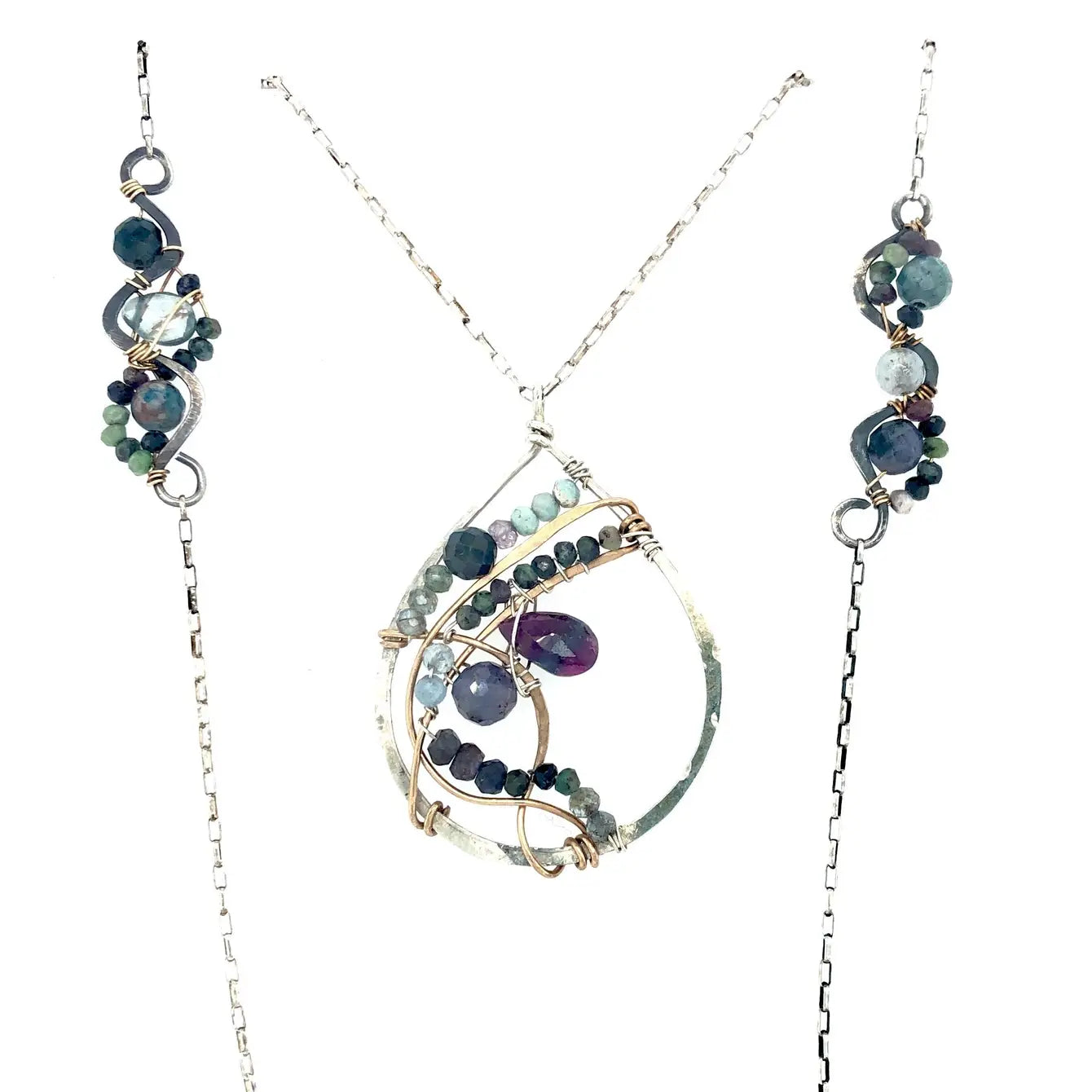 - Handmade hammered sterling silver drop and swirling vines
