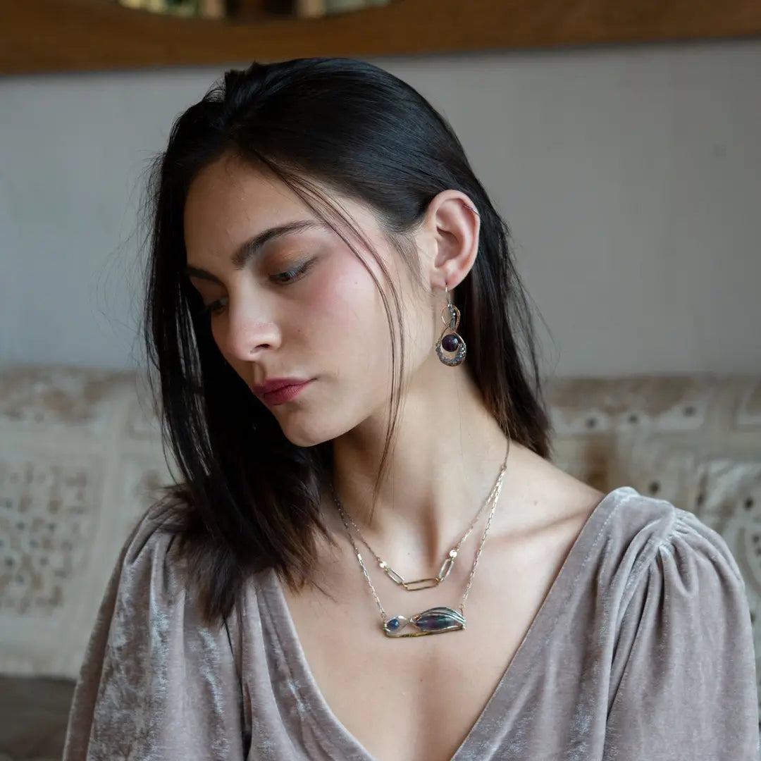 Art by Any Means jewelry is designed by Vanessa Savlen and completely handmade in our seaside studio. Graceful silhouettes of hand-formed hammered metals are set with individually selected gemstones to create light sculptural pieces that are as original as you. Art by Any Means earthy glam jewelry details are artisanal luxury with intention and style. Why wear accessories when you can wear art?