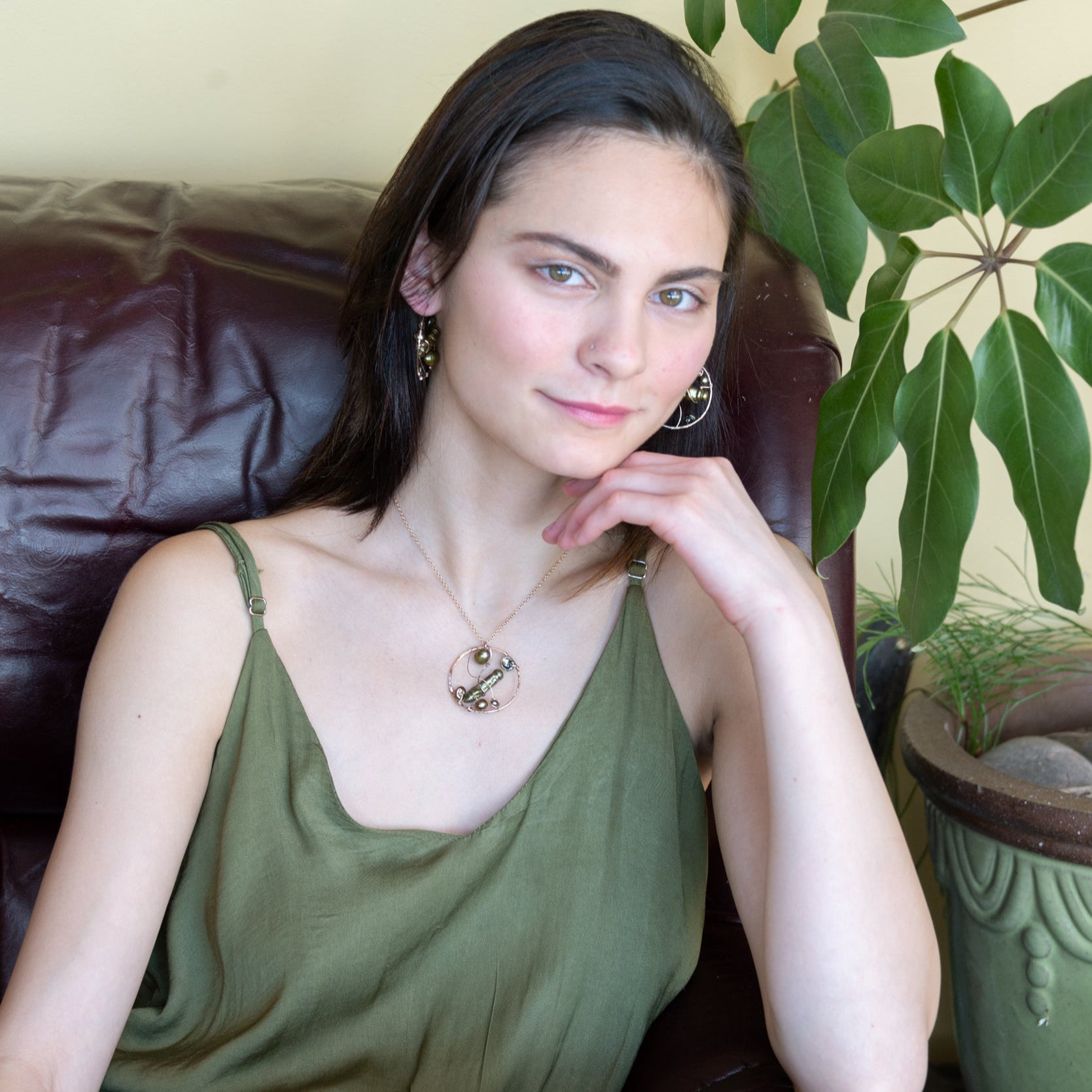Pair with Olive Pearl Seed Hoop Earrings E83531 or Olive Tree Pearl Earrings E83532