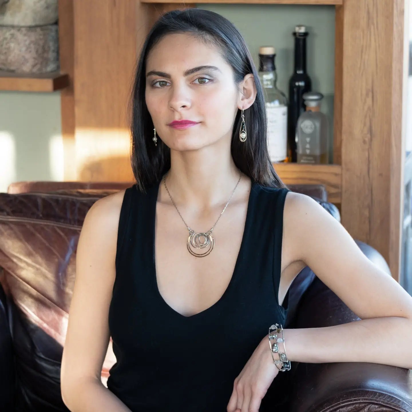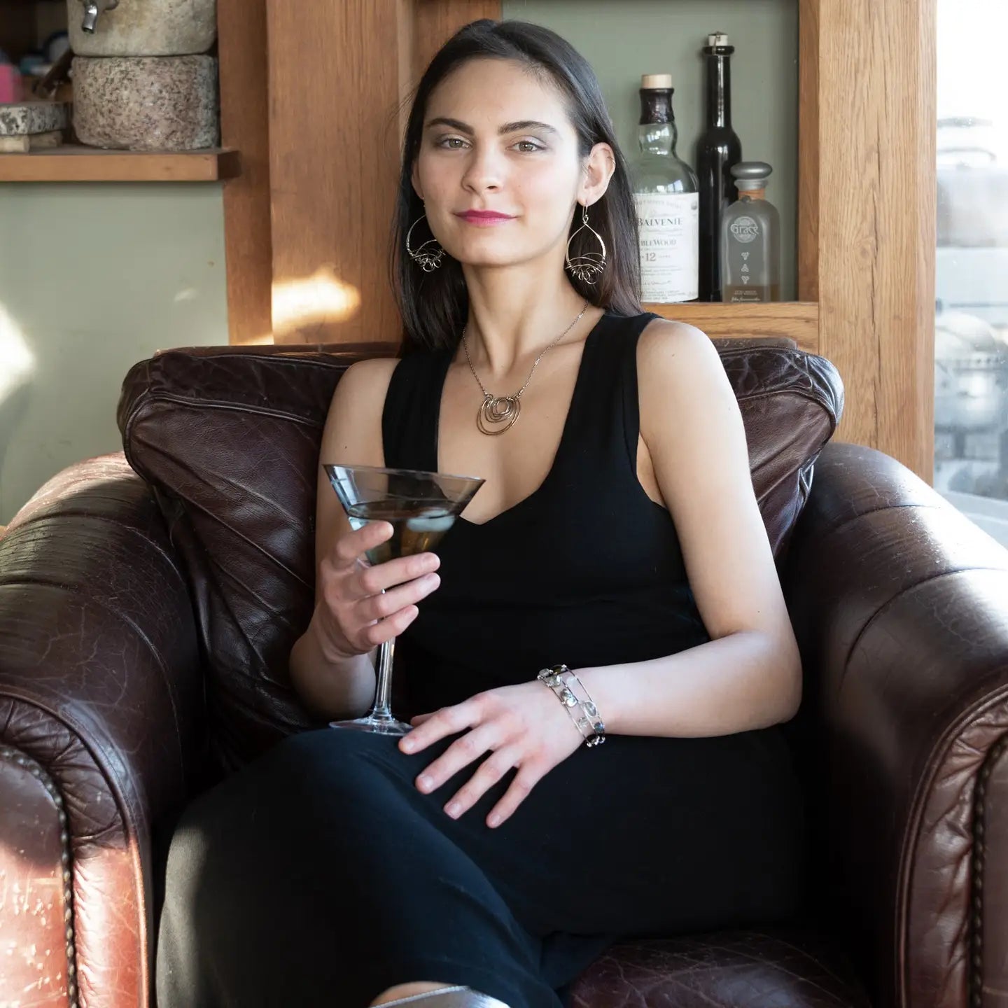 Art by Any Means jewelry is designed by Vanessa Savlen and completely handmade in our seaside studio. Graceful silhouettes of hand-formed hammered metals are set with individually selected gemstones to create light sculptural pieces that are as original as you. Art by Any Means earthy glam jewelry details are artisanal luxury with intention and style. Why wear accessories when you can wear art?
