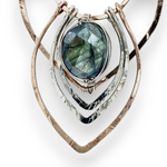 Art by Any Means jewelry is designed by Vanessa Savlen and completely handmade in our seaside studio. Graceful silhouettes of hand-formed hammered metals are set with individually selected gemstones to create light sculptural pieces that are as original as you. Art by Any Means earthy glam jewelry details are artisanal luxury with intention and style. Why wear accessories when you can wear art?
