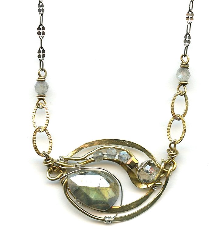 14k gold filled links, labradorite gemstone accent sterling silver 16"-18" chain with adjuster and handmade signature clasp.