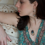 Do not store in direct sunlight. Salt water or chlorine will tarnish the metal. Use brass cleaner or silver polish on the metal. Wash gemstones with water and mild soap. Dry with a soft cloth if jewelry gets wet.