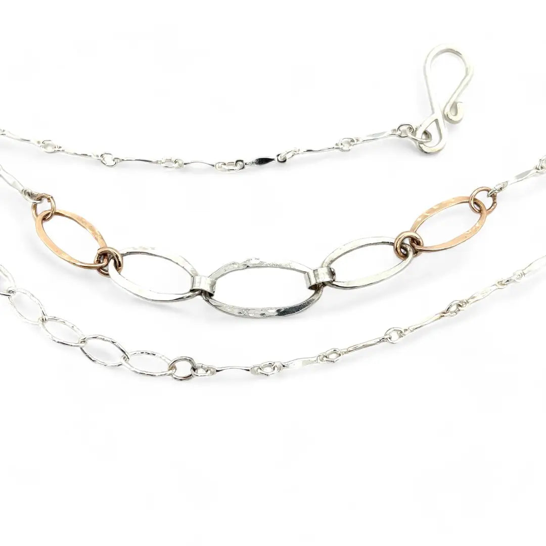 - Handmade textured sterling silver and bronze links
