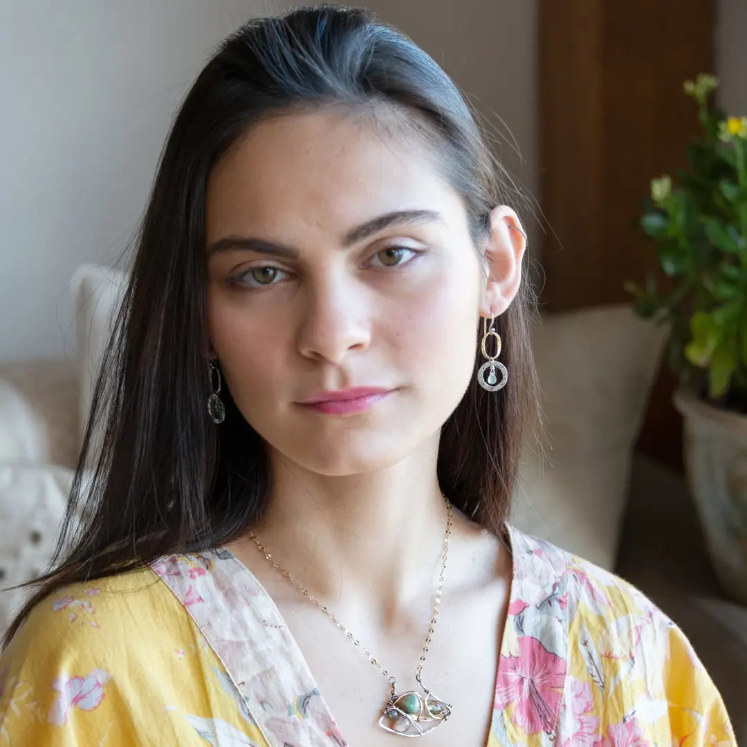 Art by Any Means jewelry is designed by Vanessa Savlen and completely handmade in our seaside studio. Graceful silhouettes of hand-formed hammered metals are set with individually selected gemstones to create light sculptural pieces that are as original as you. Art by Any Means earthy glam jewelry details are artisanal luxury with intention and style. Why wear accessories when you can wear art?