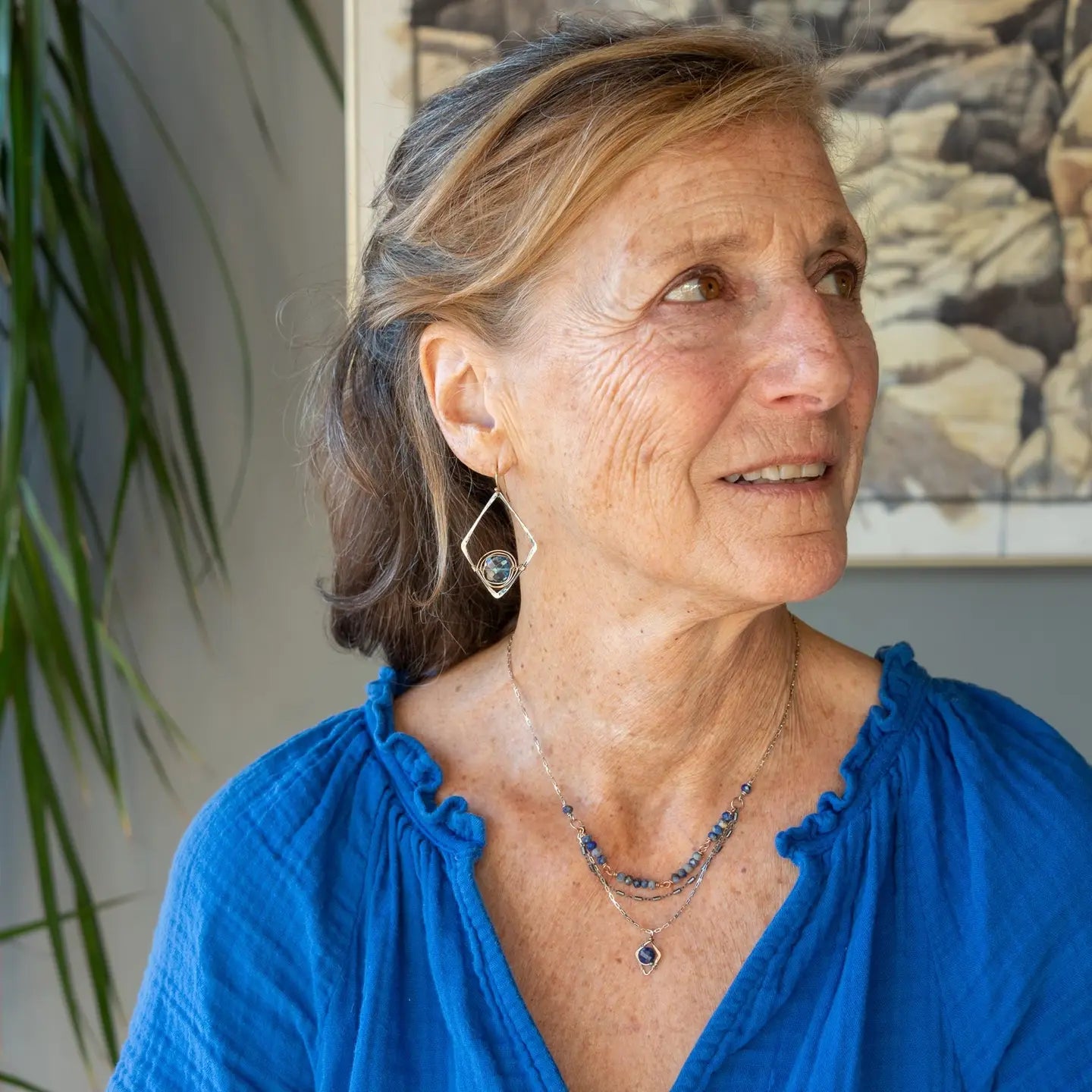 Art by Any Means jewelry is designed by Vanessa Savlen and completely handmade in our seaside studio. Graceful silhouettes of hand-formed hammered metals are set with individually selected gemstones to create light sculptural pieces that are as original as you. Art by Any Means earthy glam jewelry details are artisanal luxury with intention and style. Why wear accessories when you can wear art?
