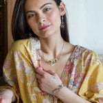 Art by Any Means jewelry is designed by Vanessa Savlen and completely handmade in our seaside studio. Graceful silhouettes of hand-formed hammered metals are set with individually selected gemstones to create light sculptural pieces that are as original as you. Art by Any Means earthy glam jewelry details are artisanal luxury with intention and style. Why wear accessories when you can wear art?