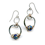 Crystal sphere hand wrapped in hammered bronze and sterling silver atom earrings.