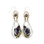 Do not store in direct sunlight. Salt water or chlorine will tarnish the metal. Use brass cleaner or silver polish on the metal. Wash gemstones with water and mild soap. Dry with a soft cloth if jewelry gets wet.