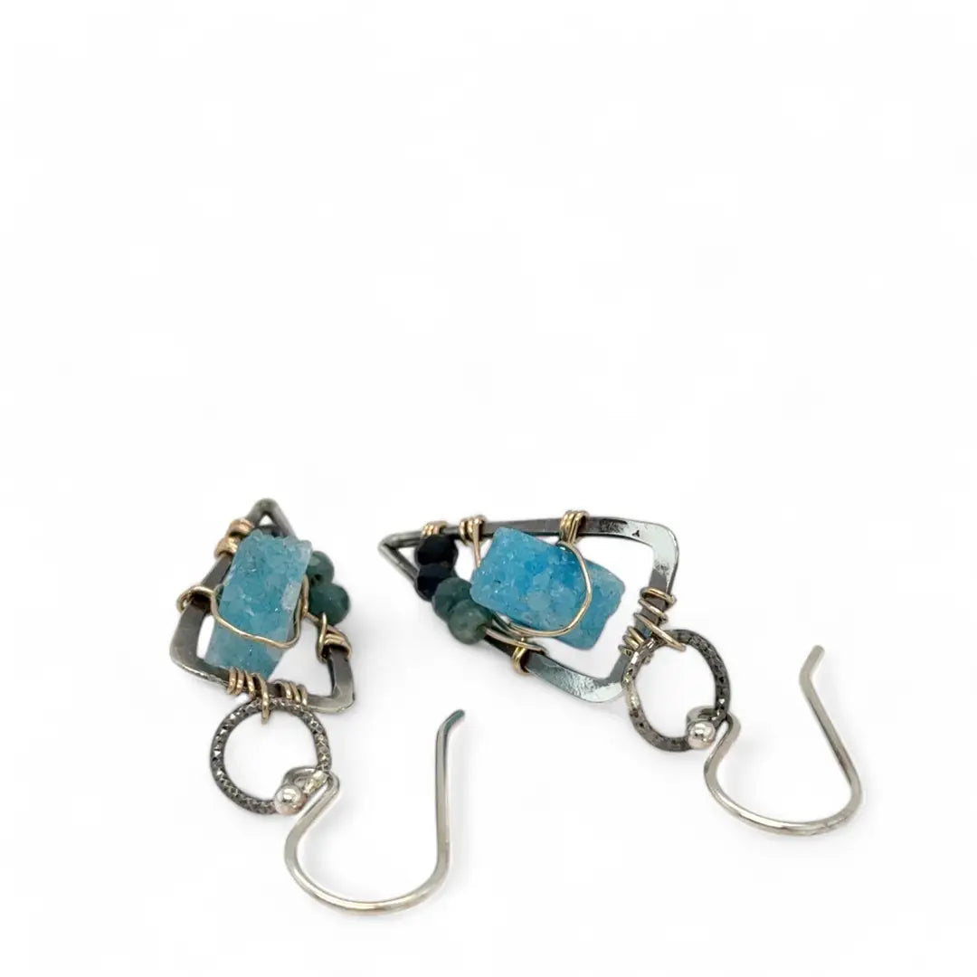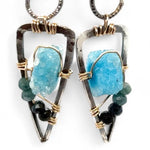 - Druzy aqua quartz gemstone slice and blue tourmaline faceted gemstones