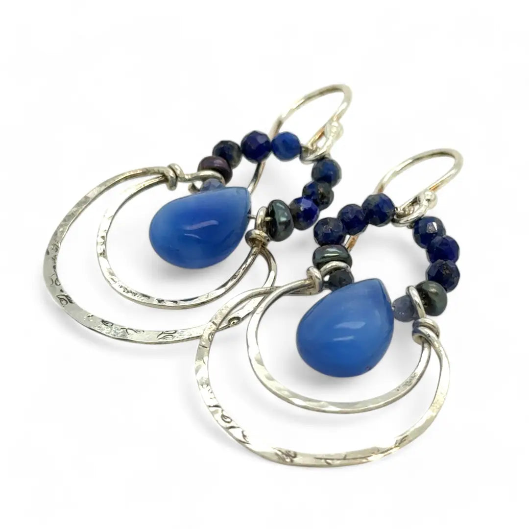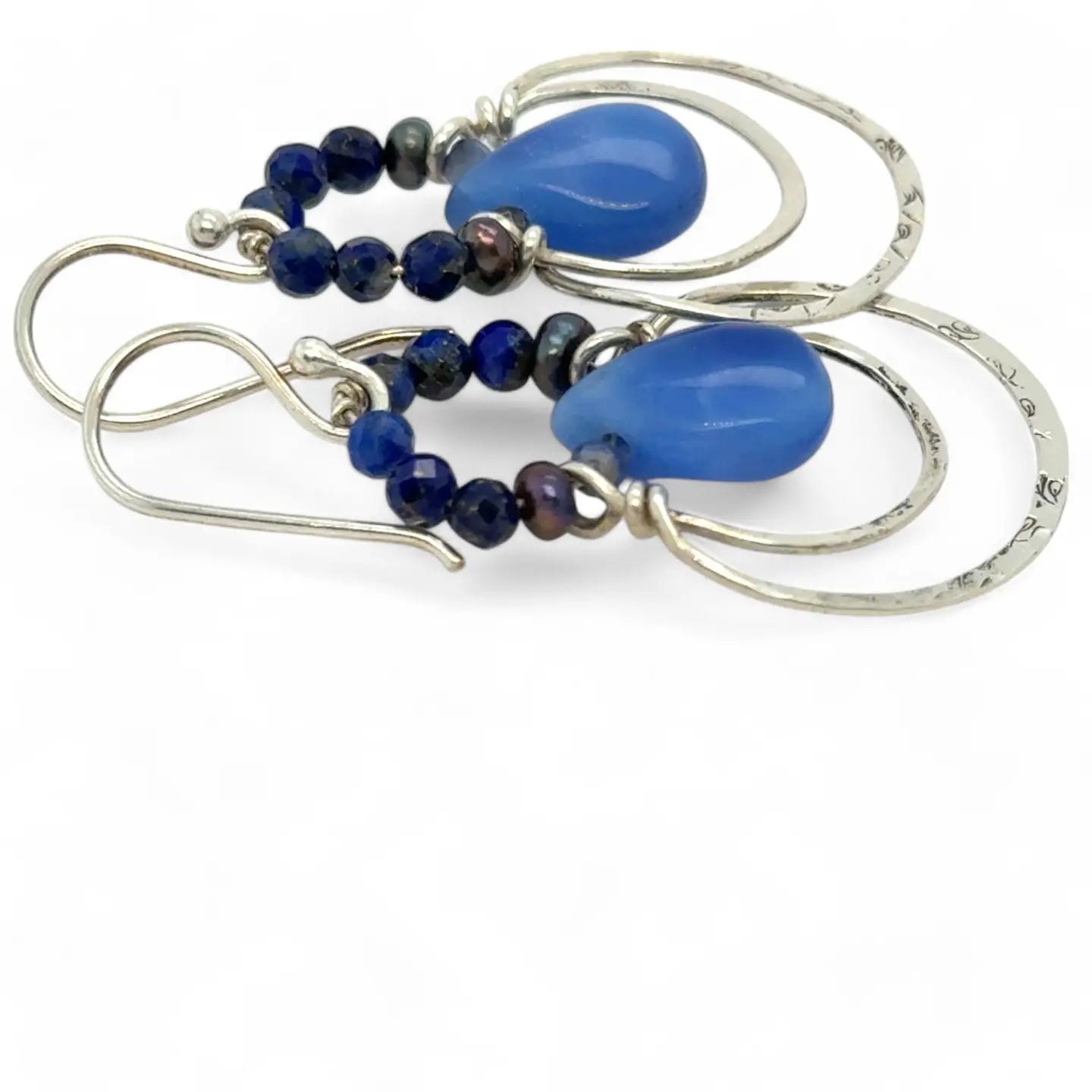 - Blue jade drop and lapis gemstones with fresh water pearl