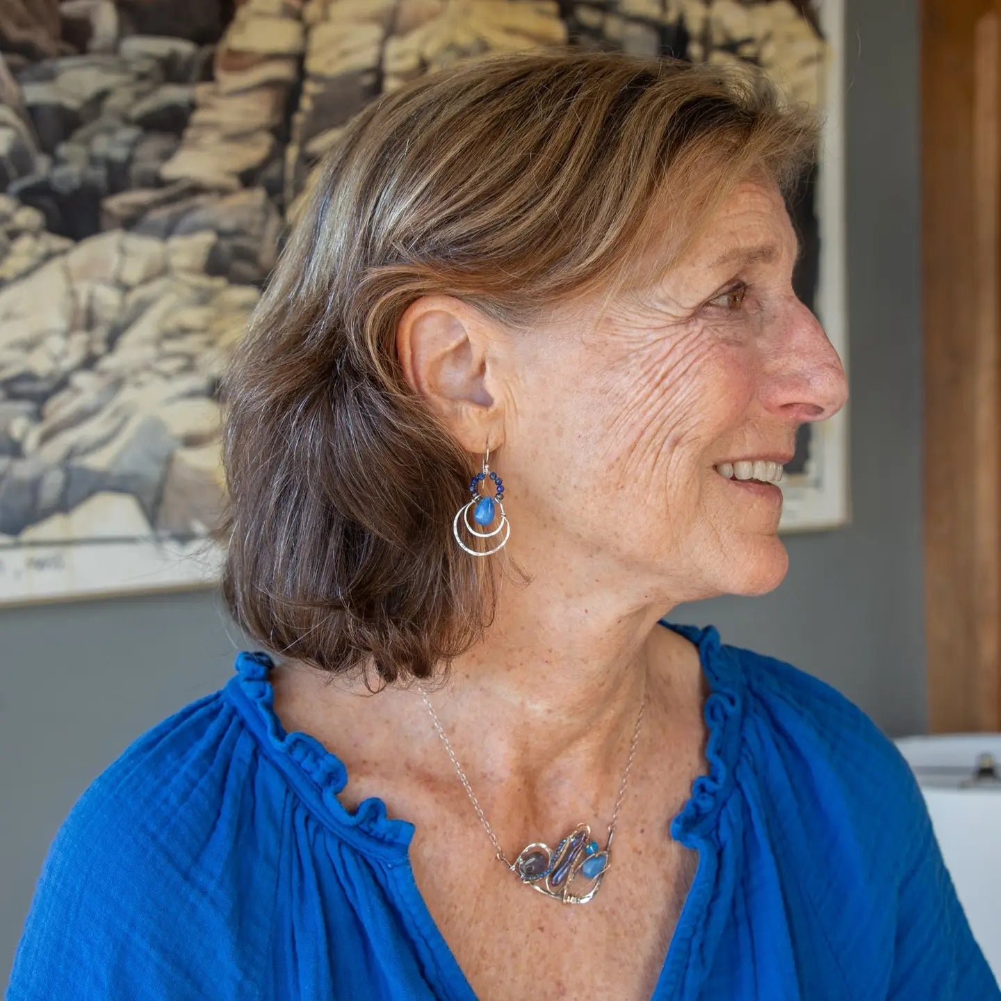 The Atlantic Waves Earrings capture the essence of New England's coastal beauty, with its distinctive blue hues. These earrings evoke memories of cool salty breezes, granite shores, and tide pools. Whether they signify your home or remind you of a special visit to our shores, these earrings serve as a wearable connection to the majestic Atlantic and all its seasonal splendor.