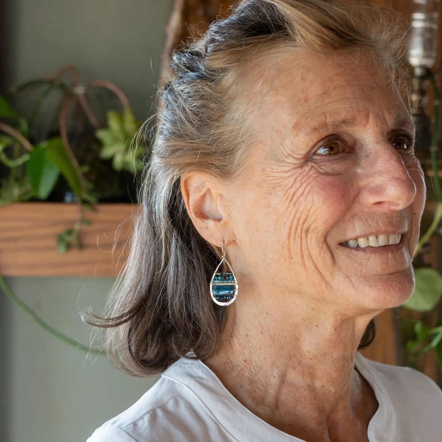 Do not store in direct sunlight. Salt water or chlorine will tarnish the metal. Use brass cleaner or silver polish on the metal. Wash gemstones with water and mild soap. Dry with a soft cloth if jewelry gets wet.