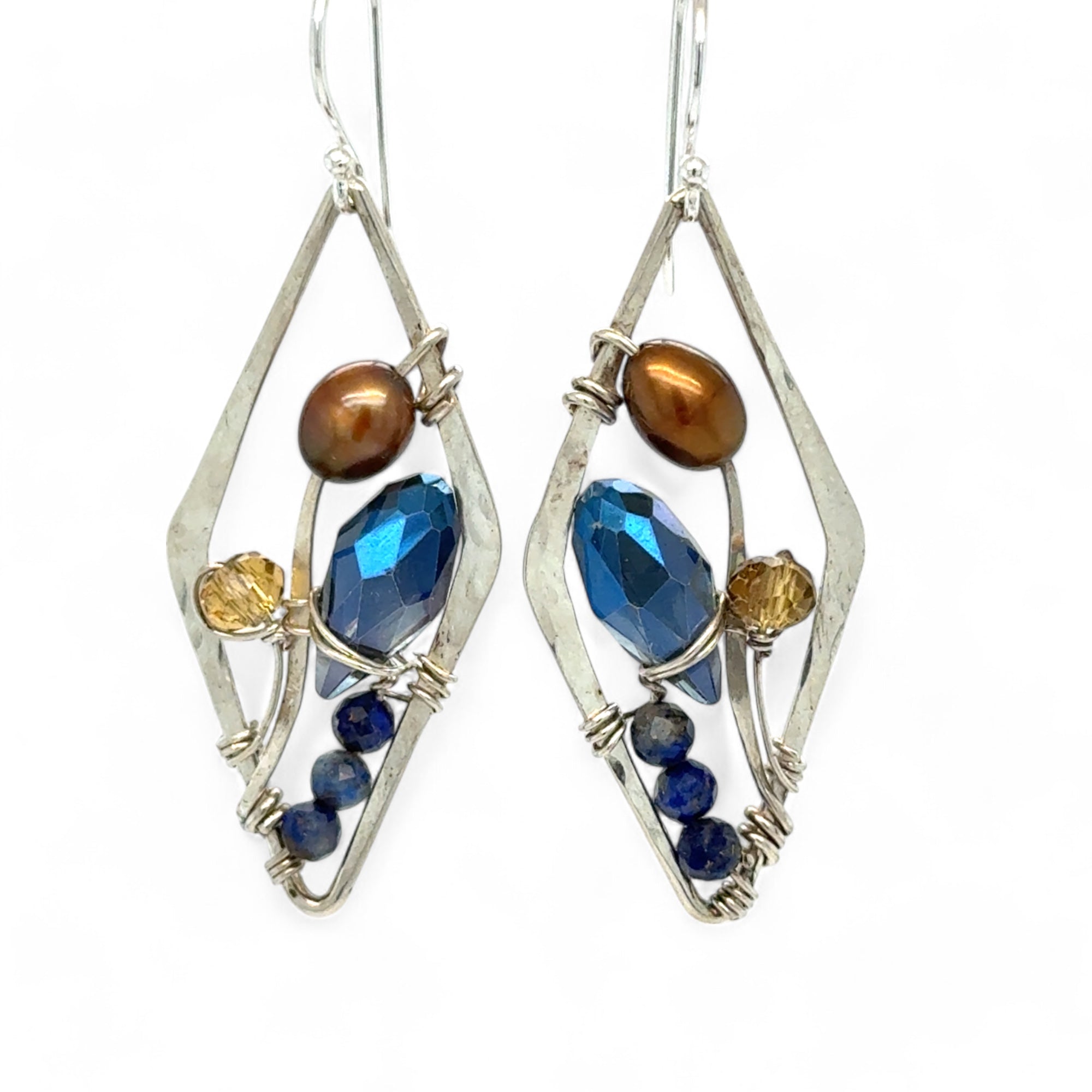- Fresh water pearls, faceted lapis gemstones, & crystal