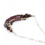 - Garnet, pink tourmaline, ruby, and mauve moonstone gemstones