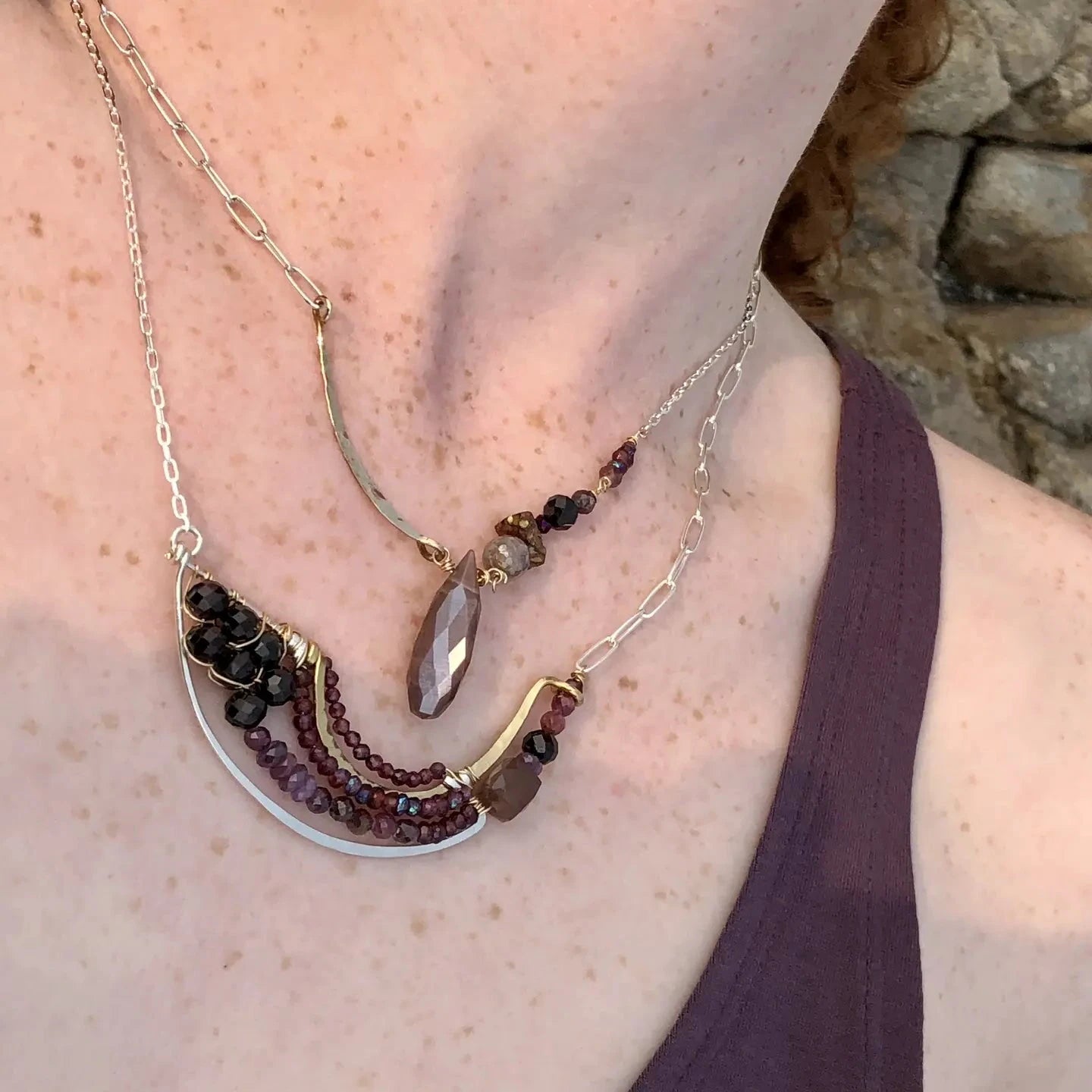 Art by Any Means jewelry is designed by Vanessa Savlen and completely handmade in our seaside studio. Graceful silhouettes of hand-formed hammered metals are set with individually selected gemstones to create light sculptural pieces that are as original as you. Art by Any Means earthy glam jewelry details are artisanal luxury with intention and style. Why wear accessories when you can wear art?